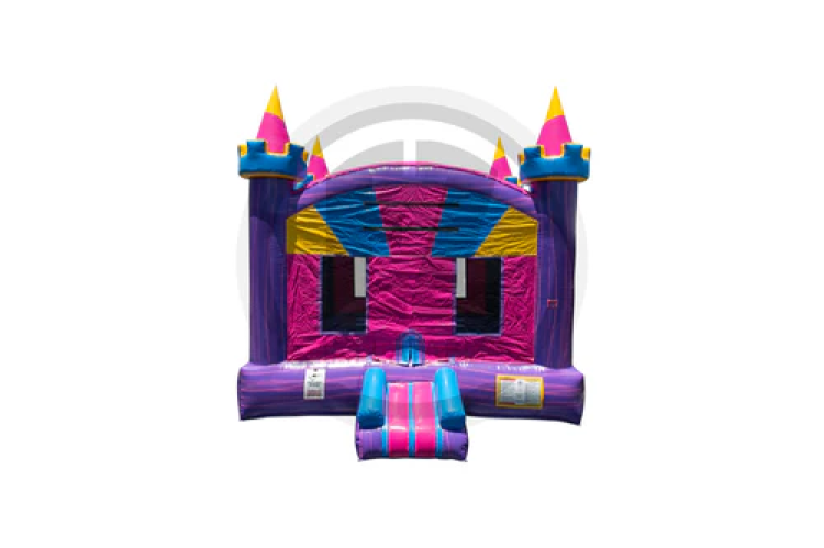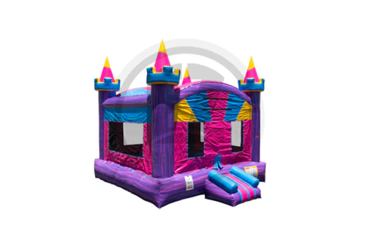 The Razzle Dazzle Bounce House features a roomy jumping area, a flashy design, and a basketball hoop to spice things up a notch. Provides hours of fun.